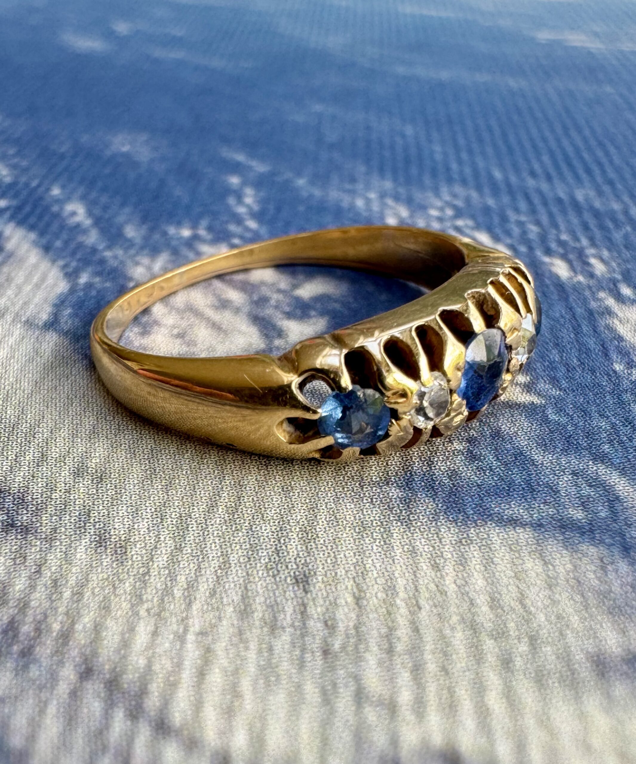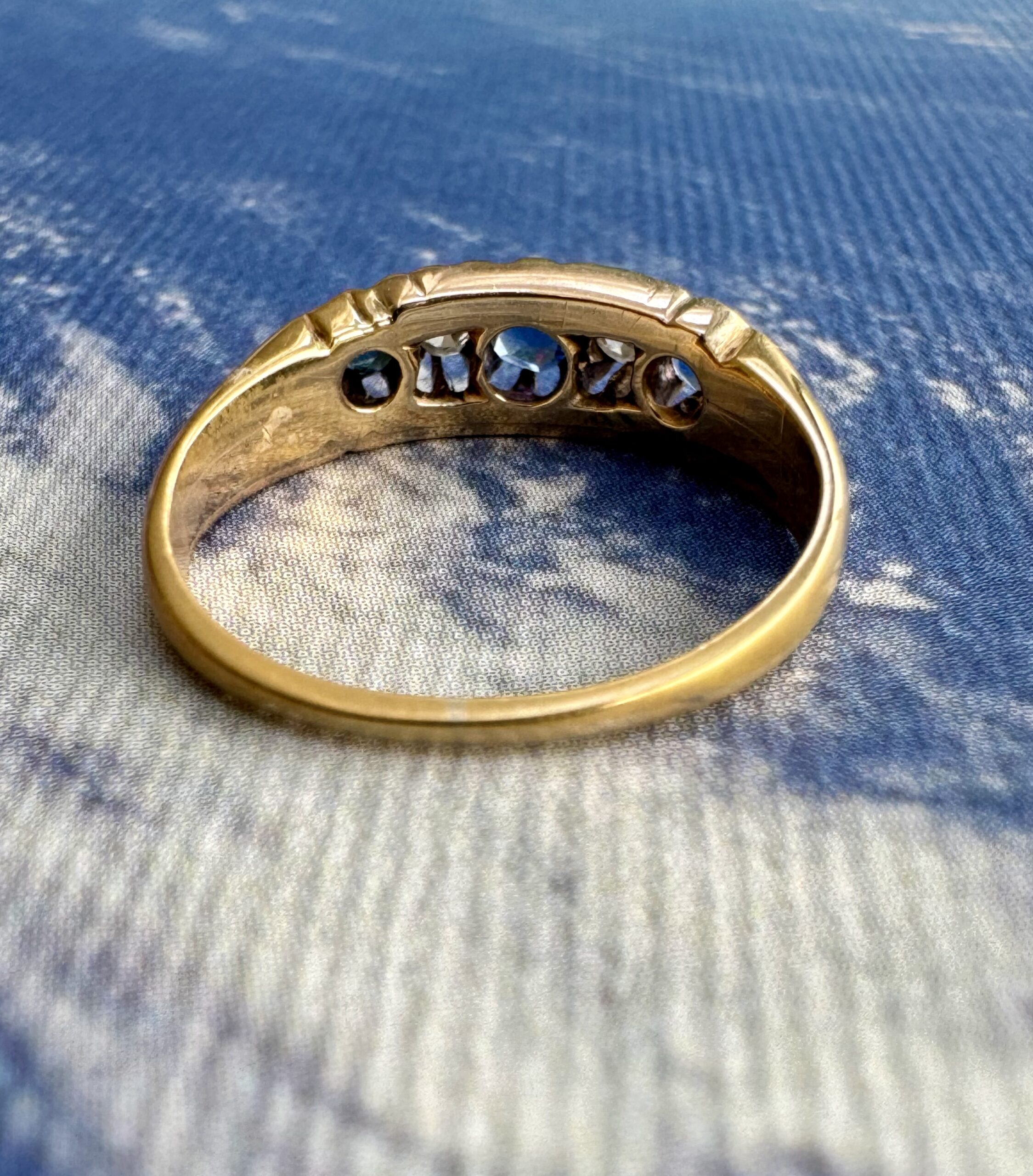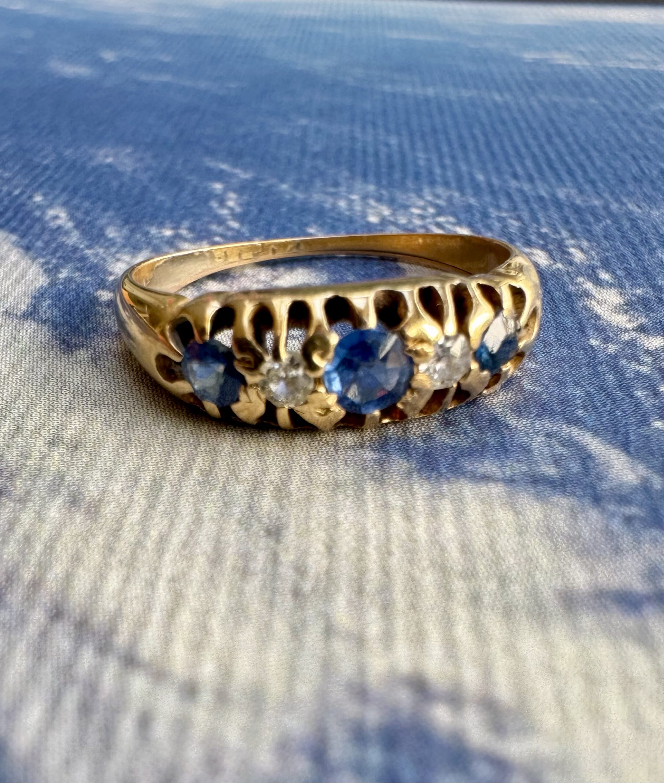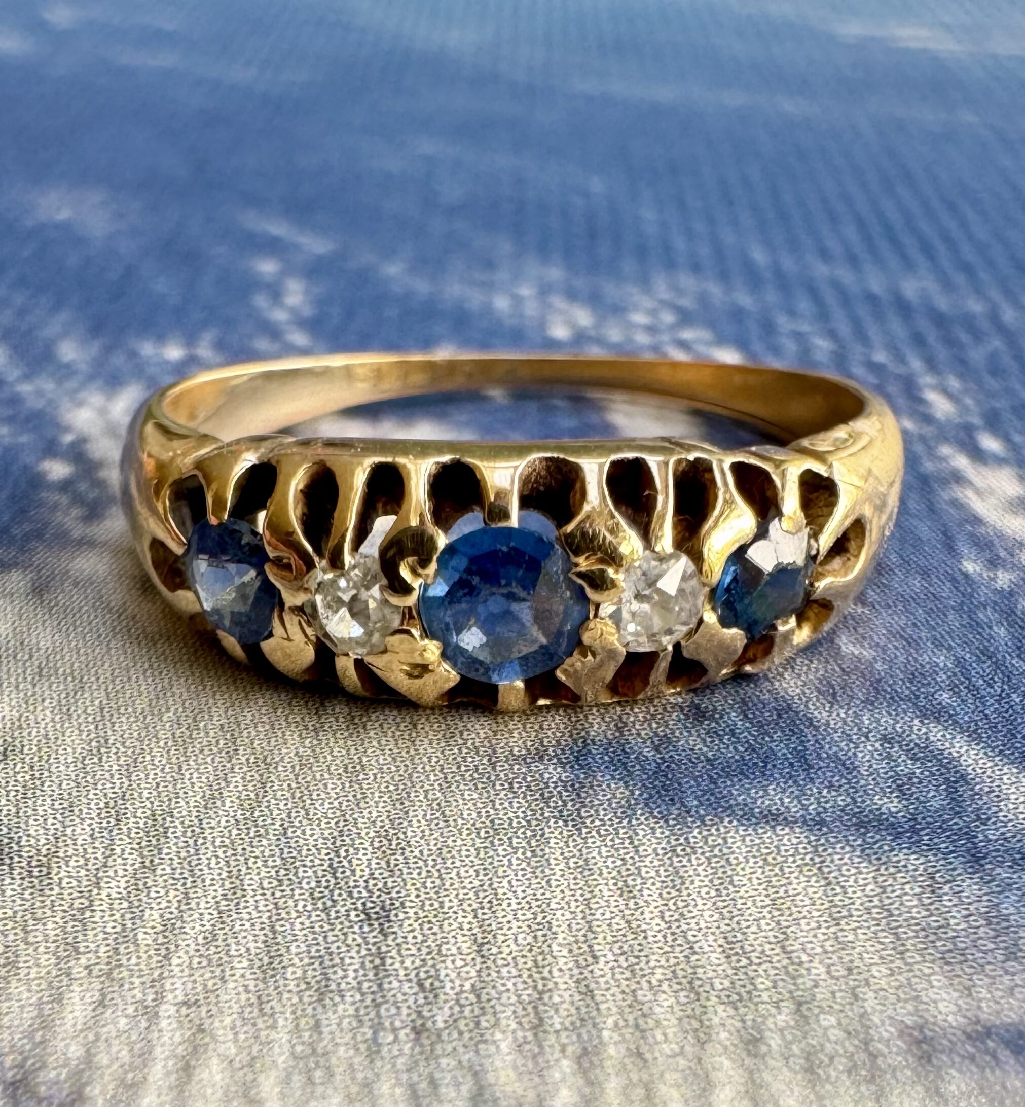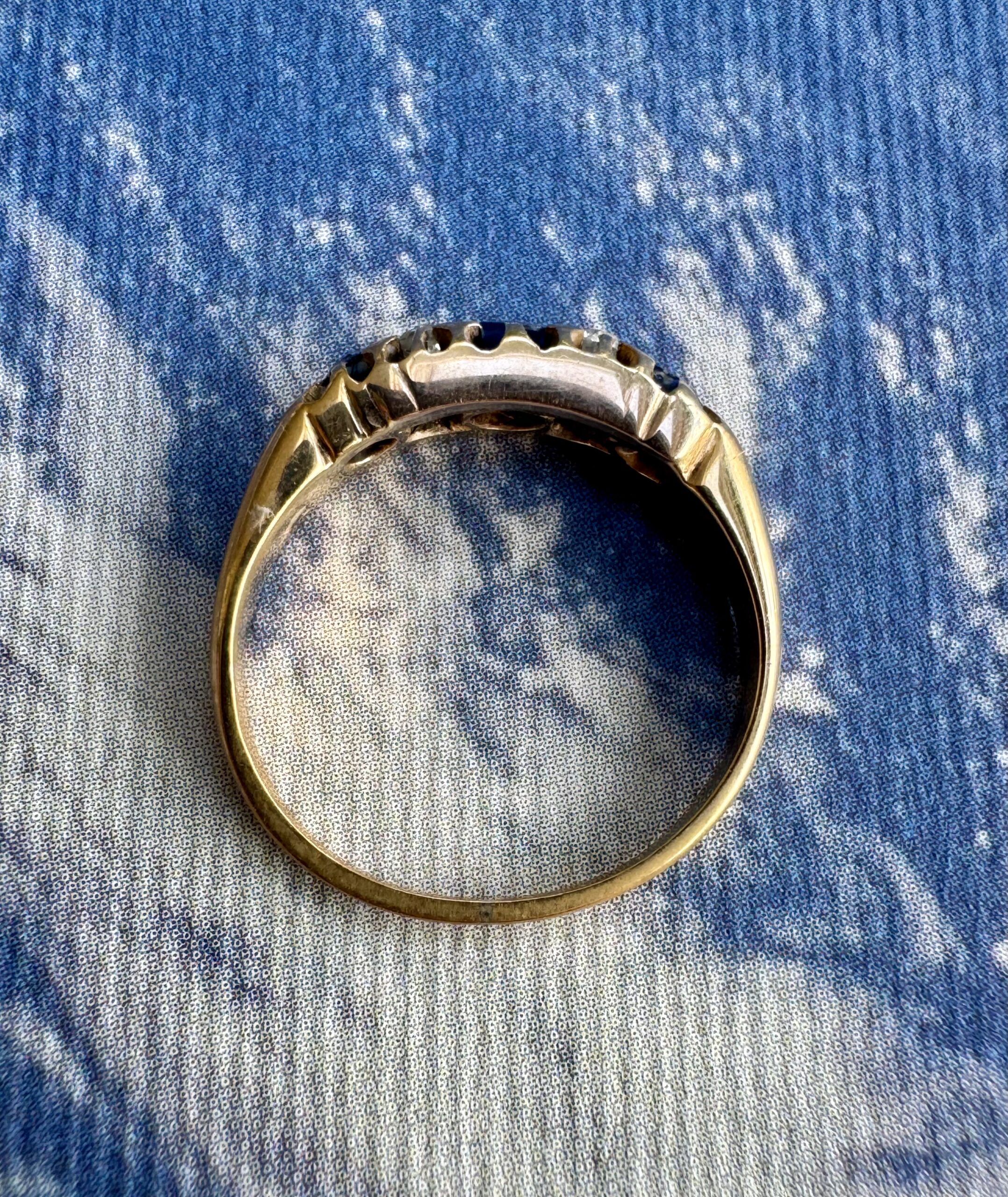 A wonderful example of an Antique Victorian sapphire & diamond ring crafted in 18ct gold. Hallmarked and tested as 18ct gold.
