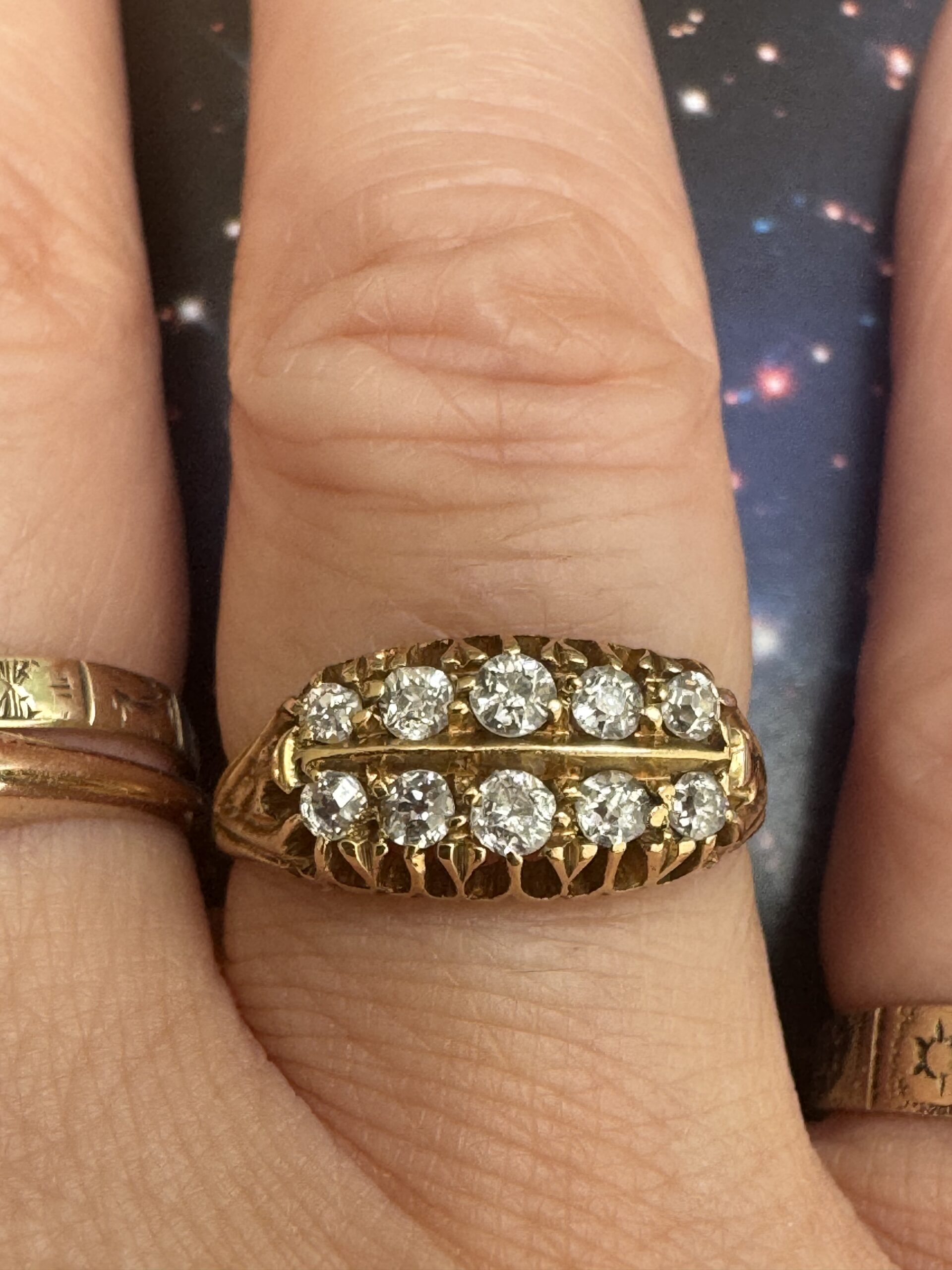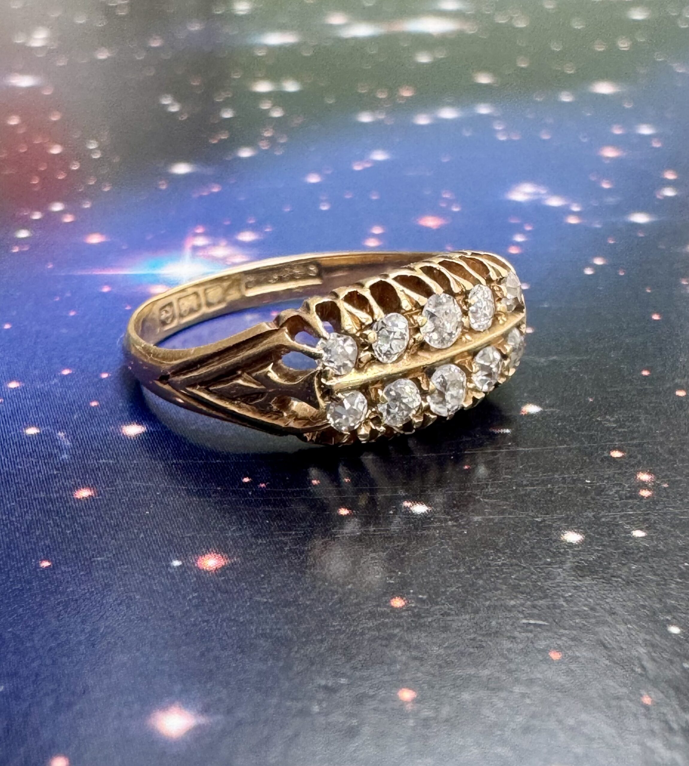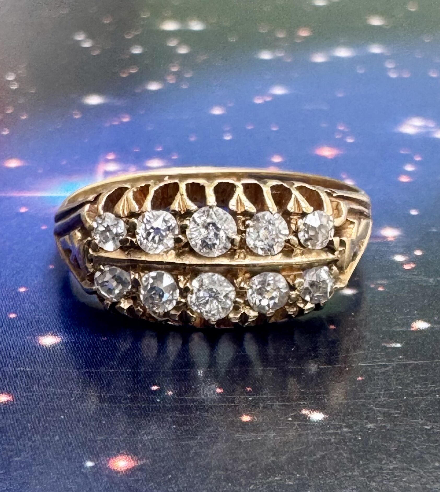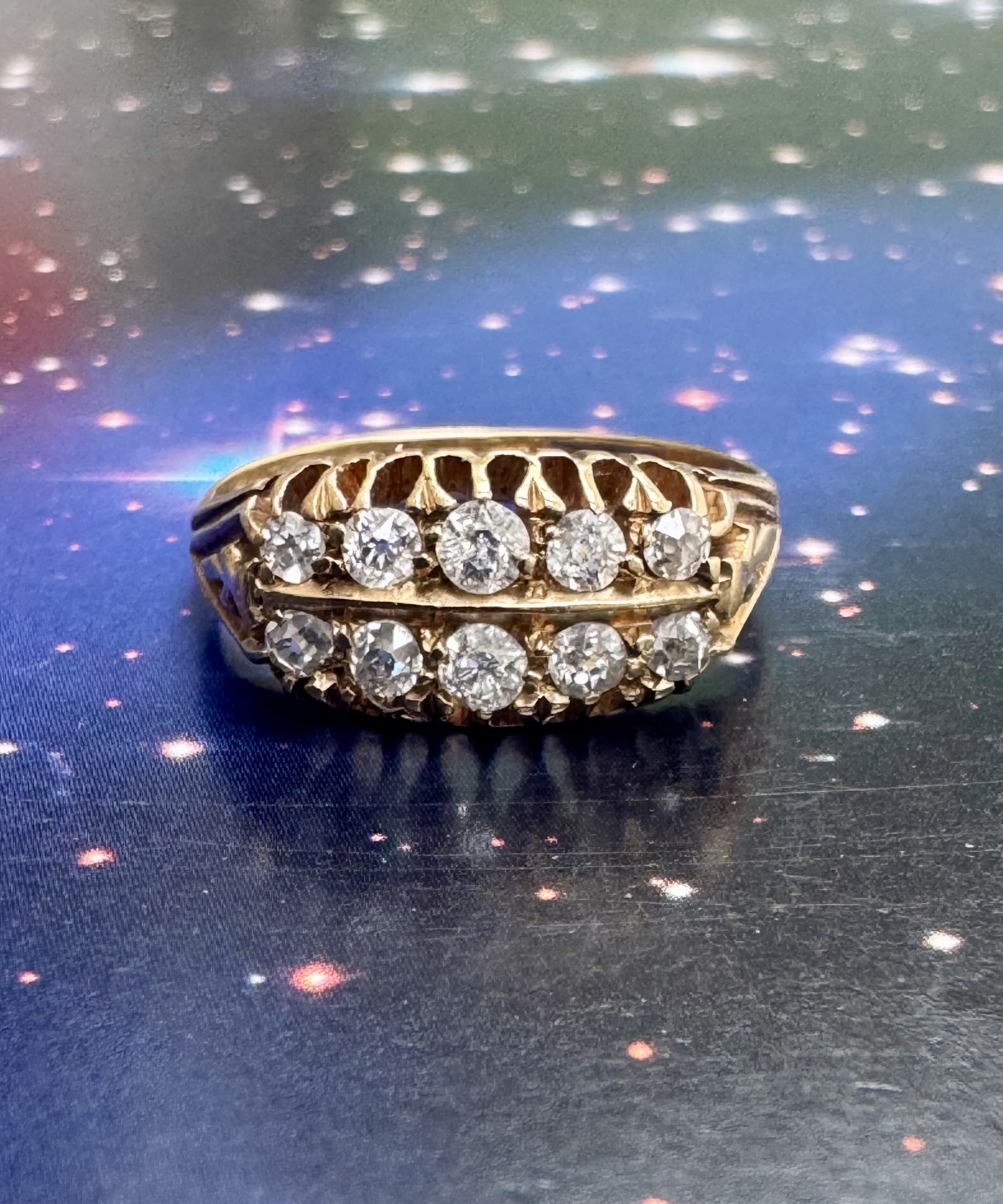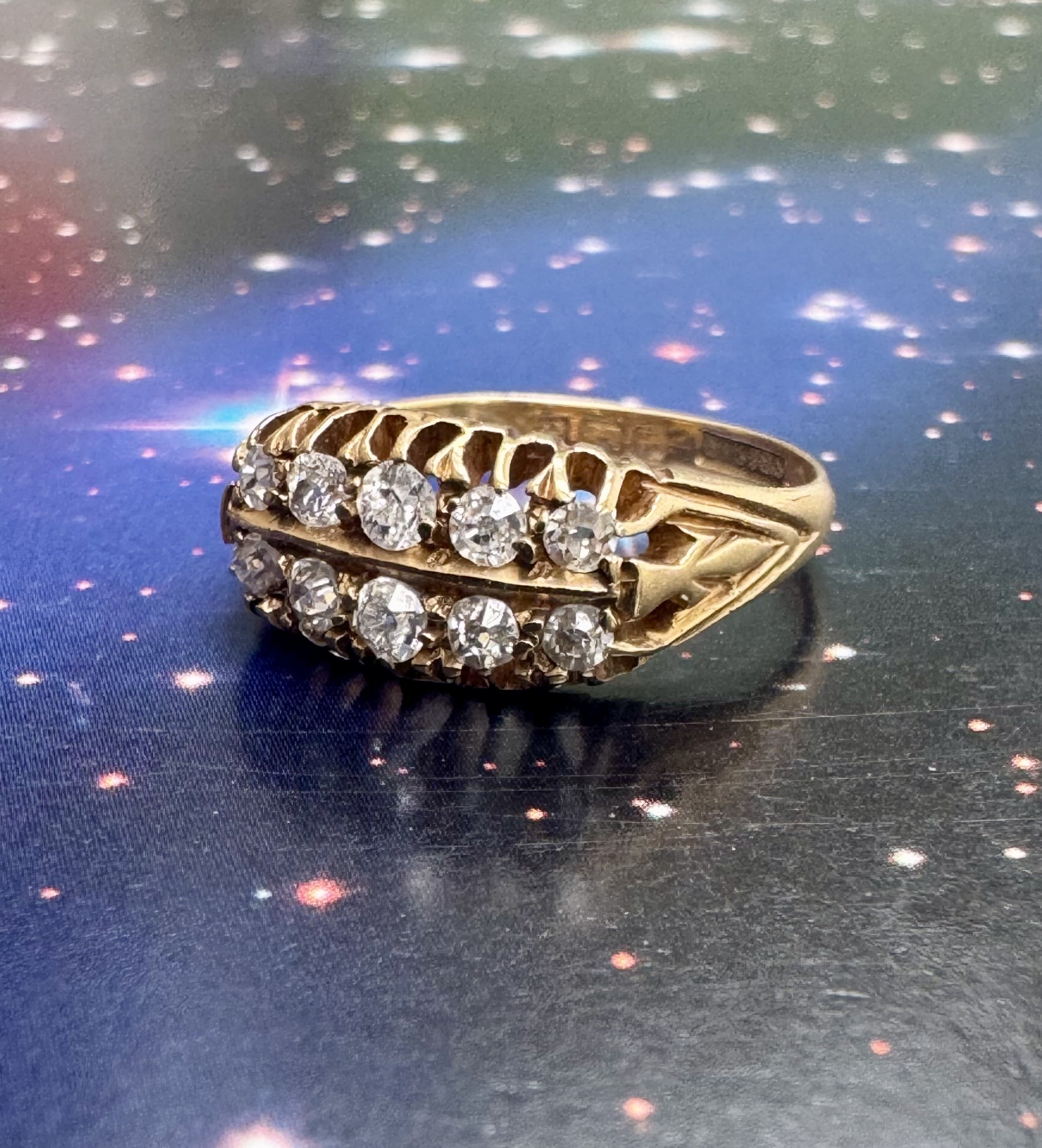 Absolutely stunning antique double row diamond ring, complete with 10 old cut diamonds and set in 18ct gold.