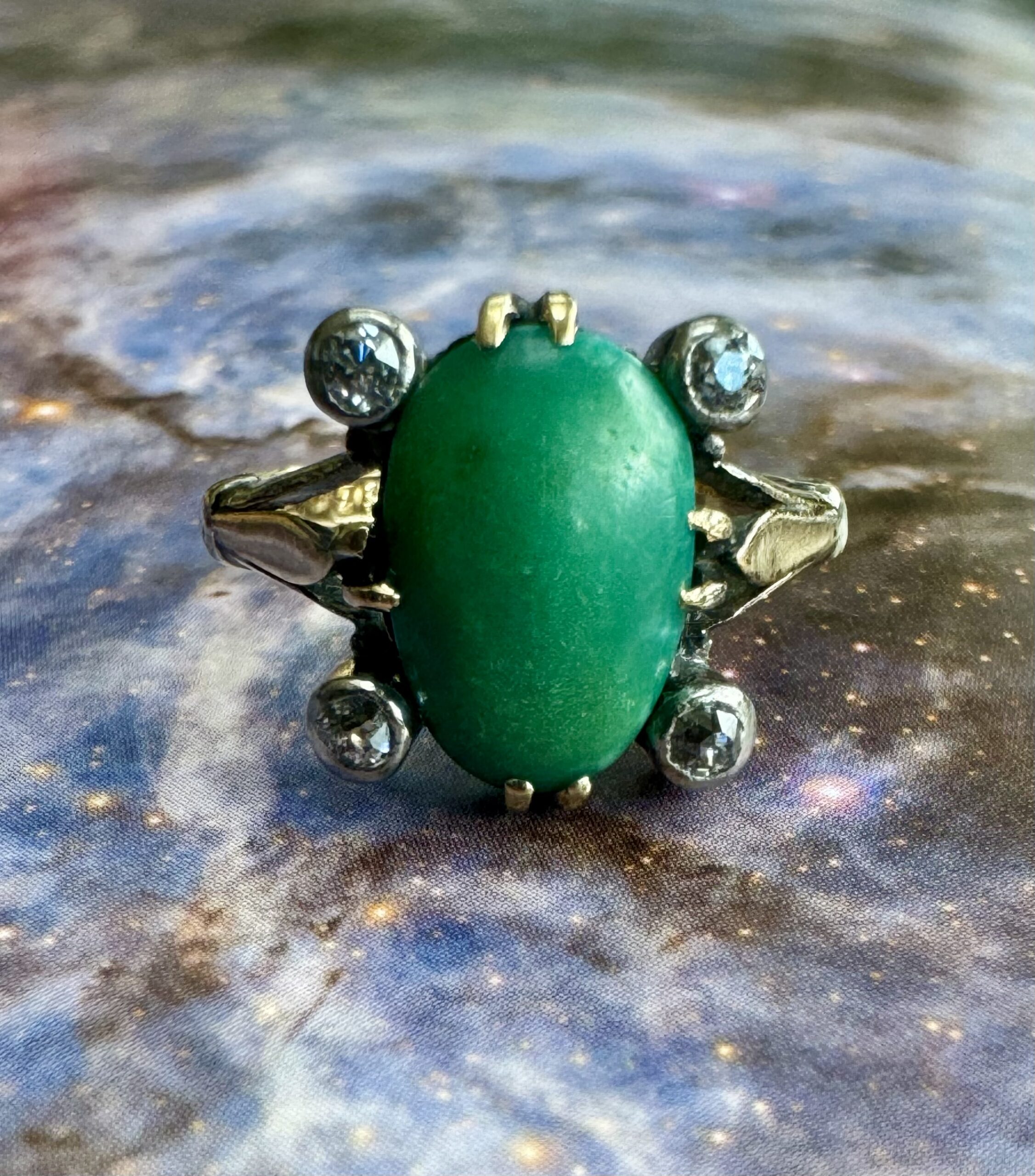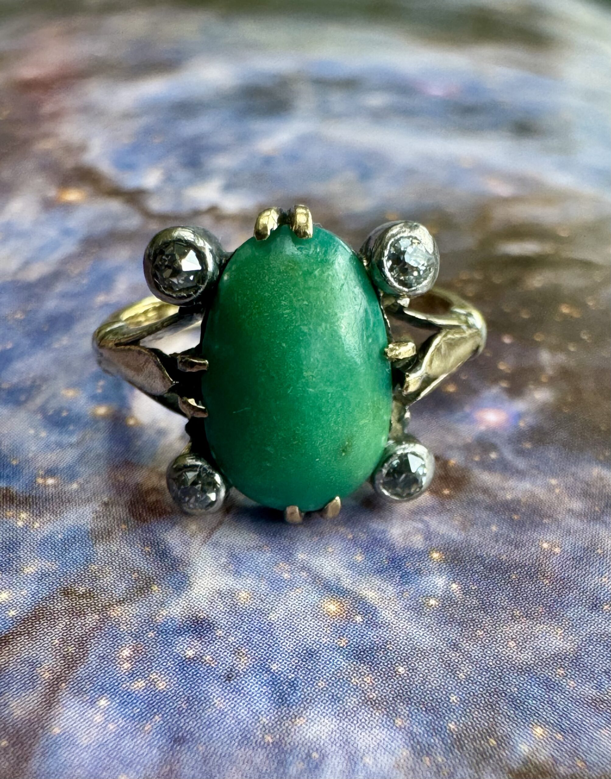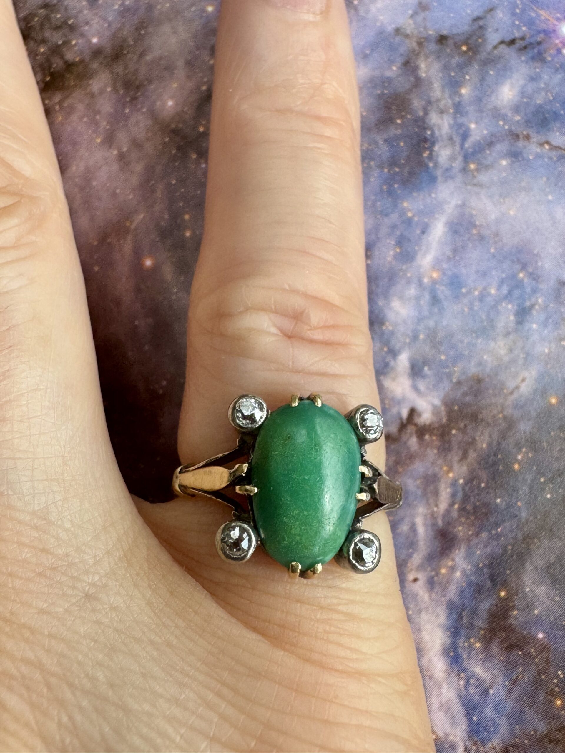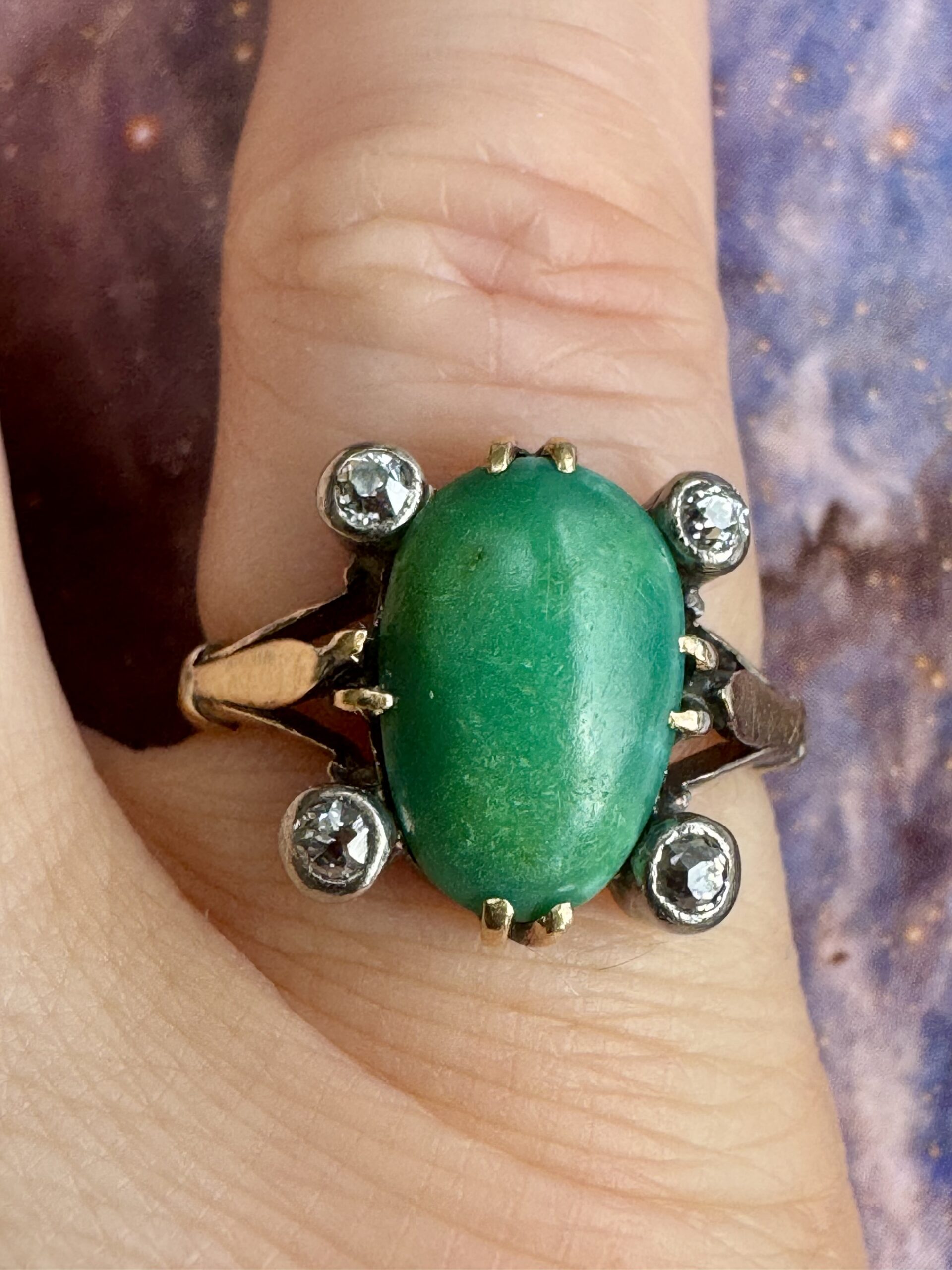 More pictures of this beautiful antique turquoise and diamond ring can be found here.