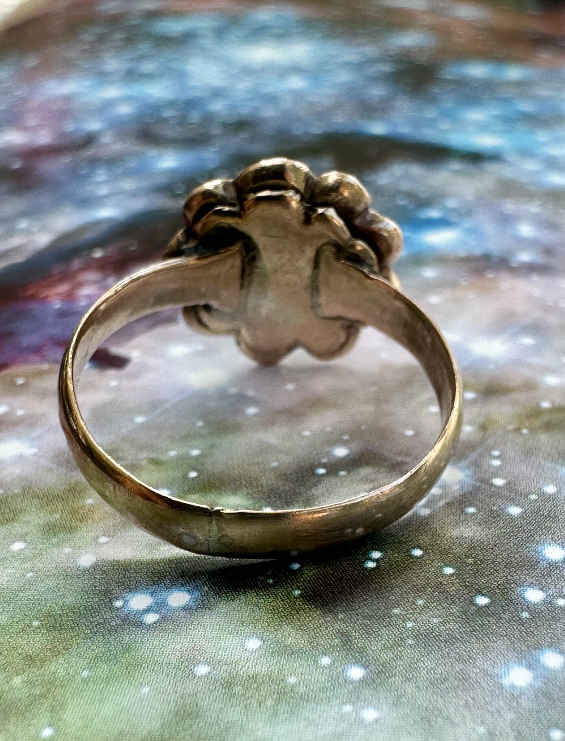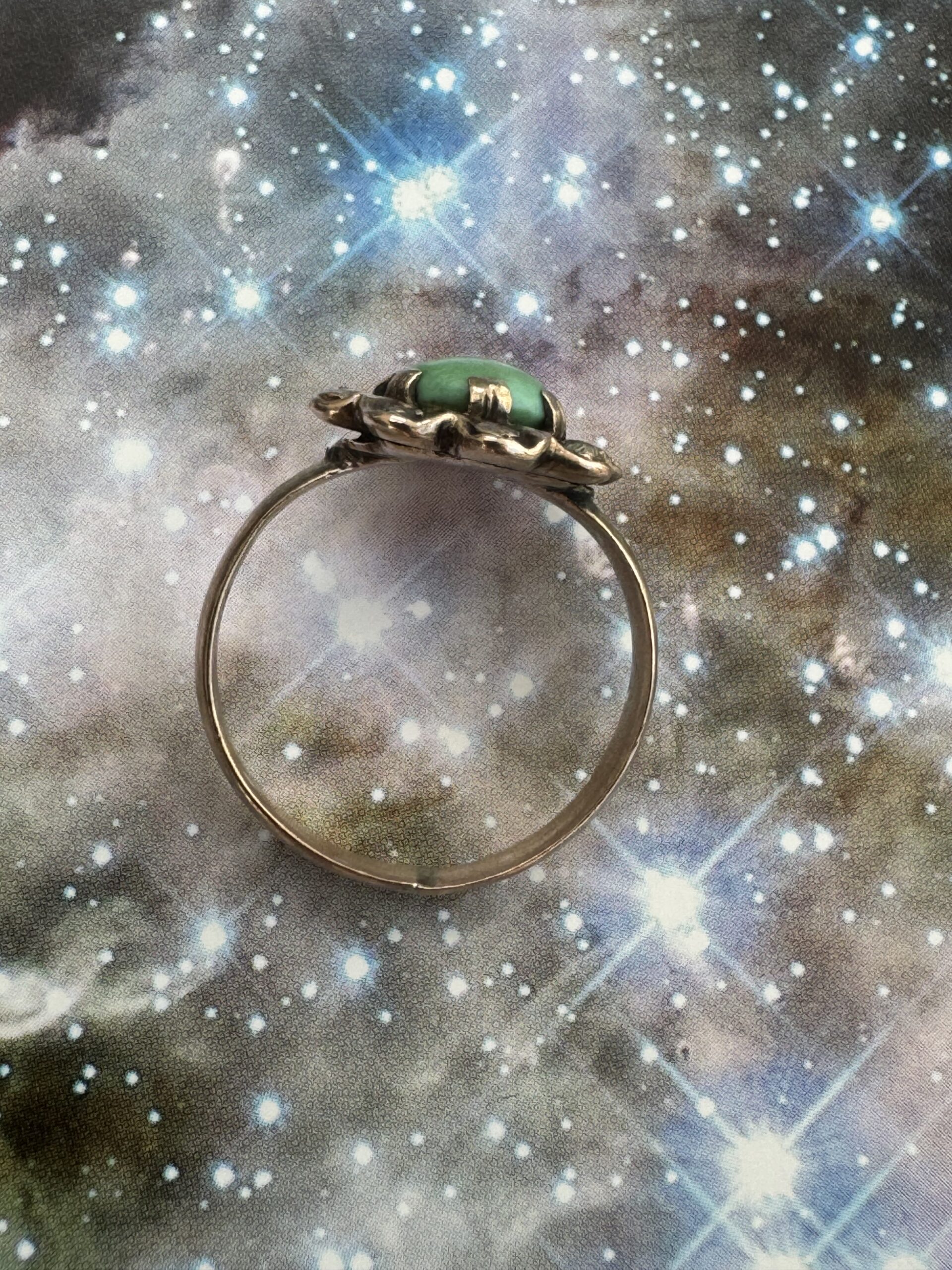 More pictures of this unusual but beautiful antique turquoise and rose cut diamond ring can be found here.