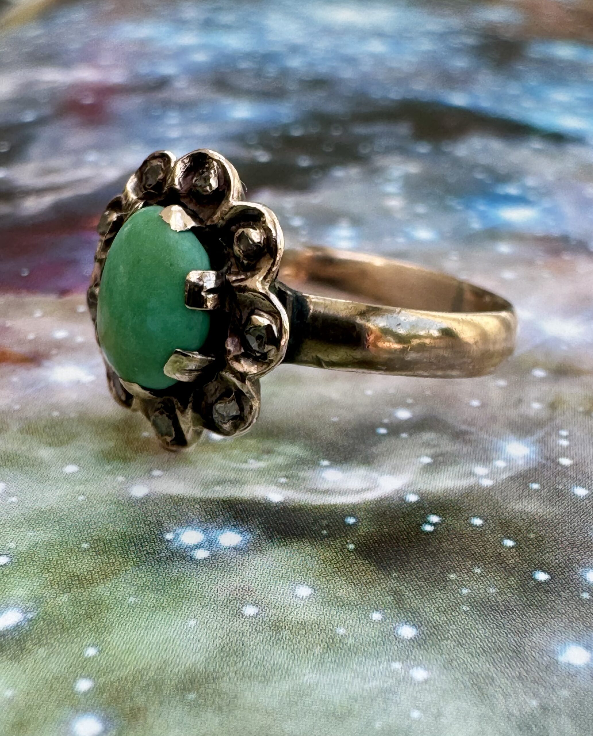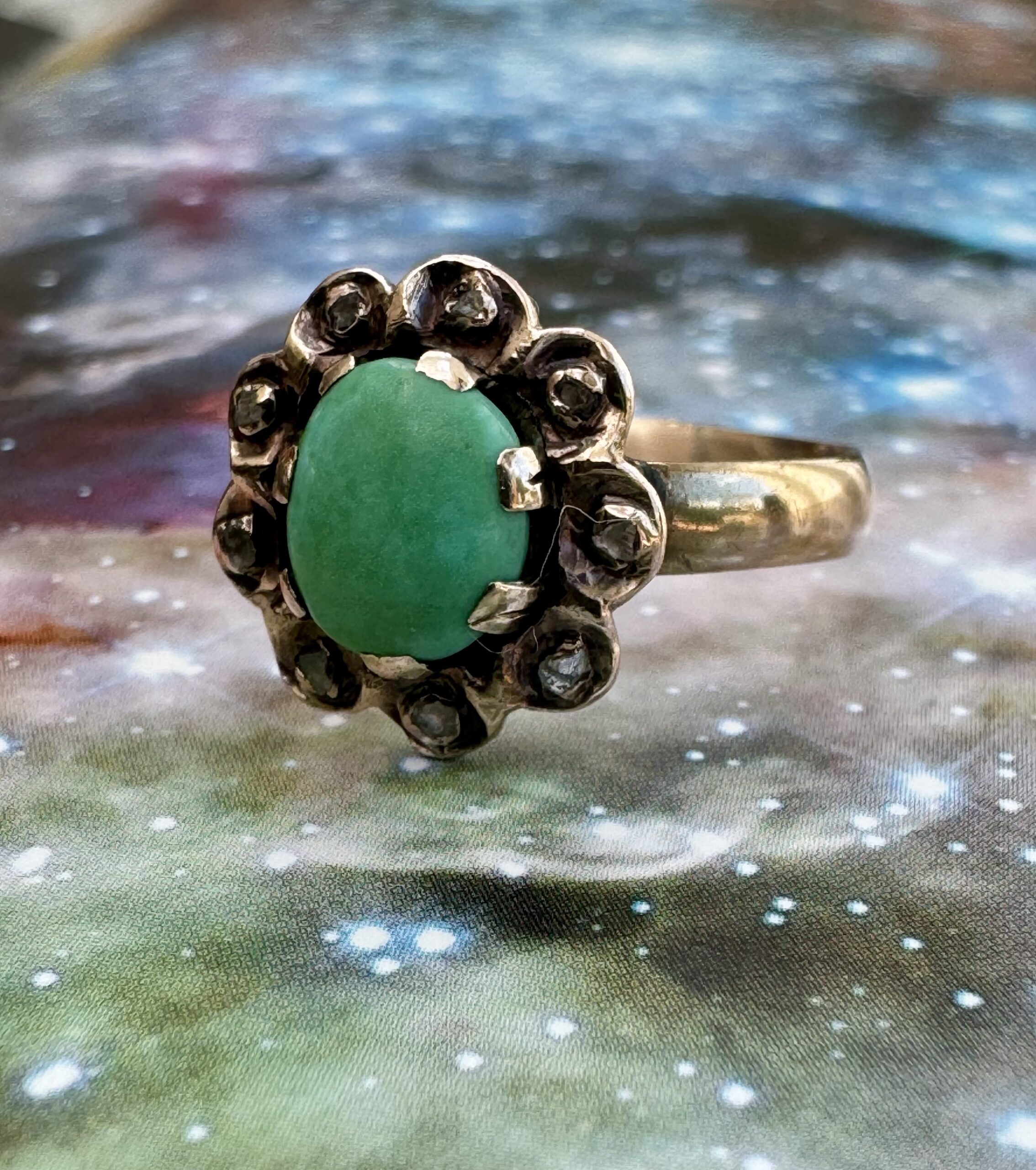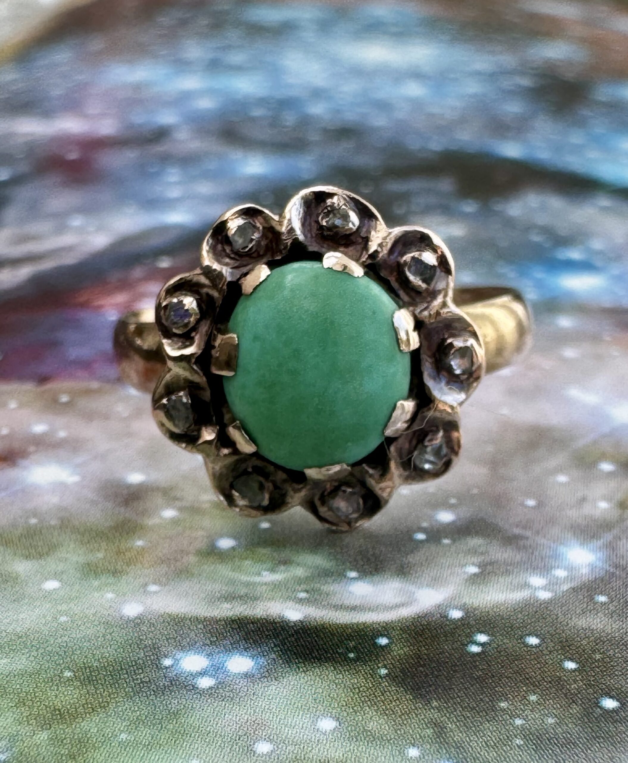 Antique Turquoise and Rose Cut Diamond Ring – 10ct Gold
