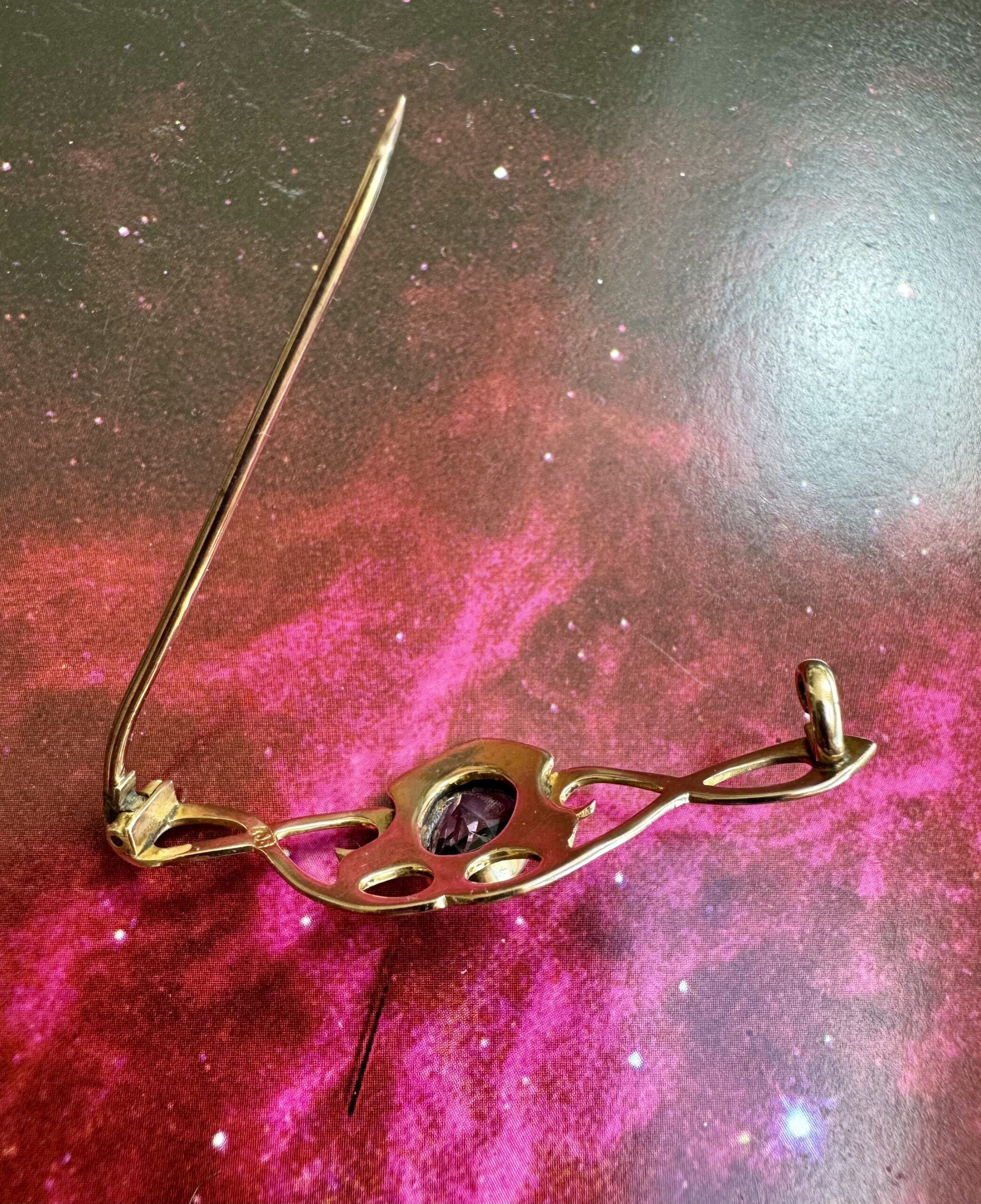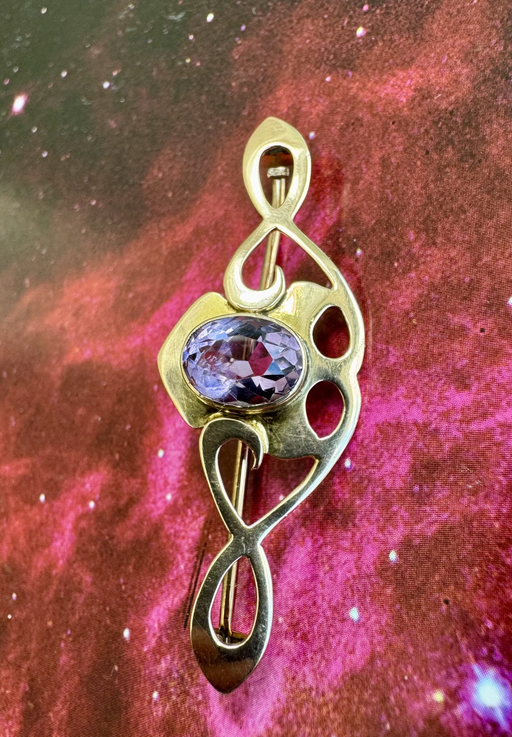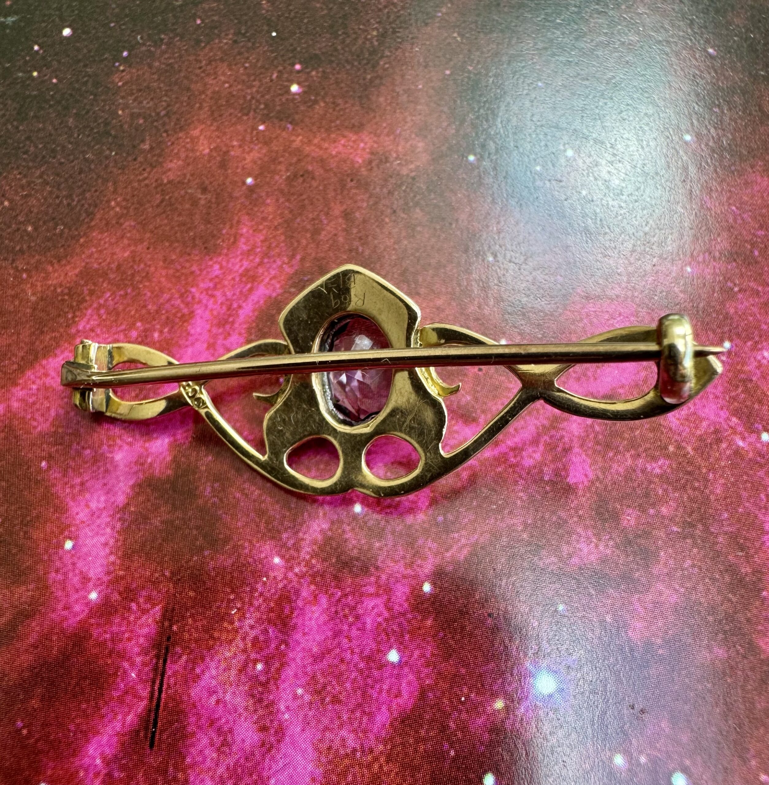 Lovely Art Nouveau 9ct Gold and Amethyst Brooch – beautiful condition, clear stone.