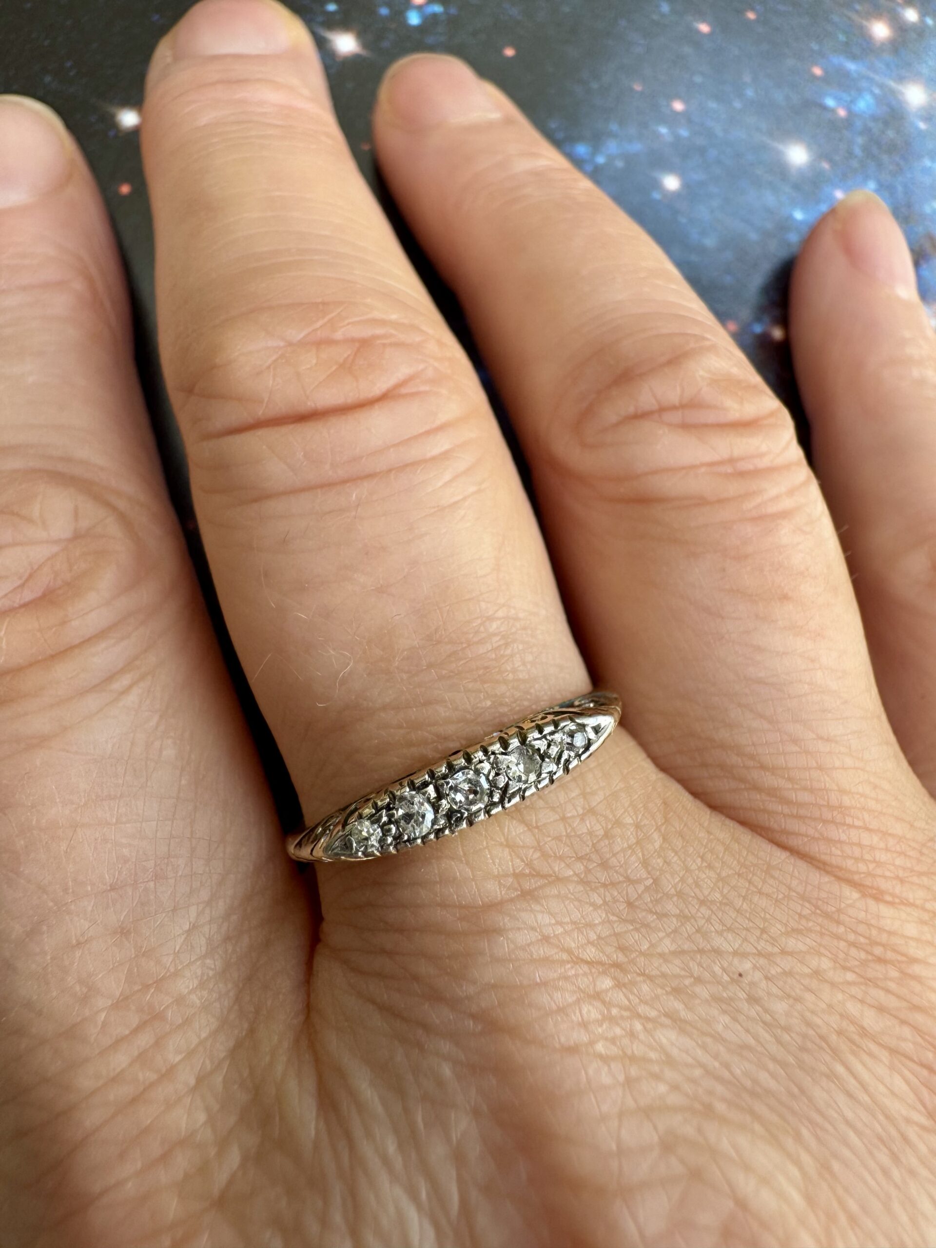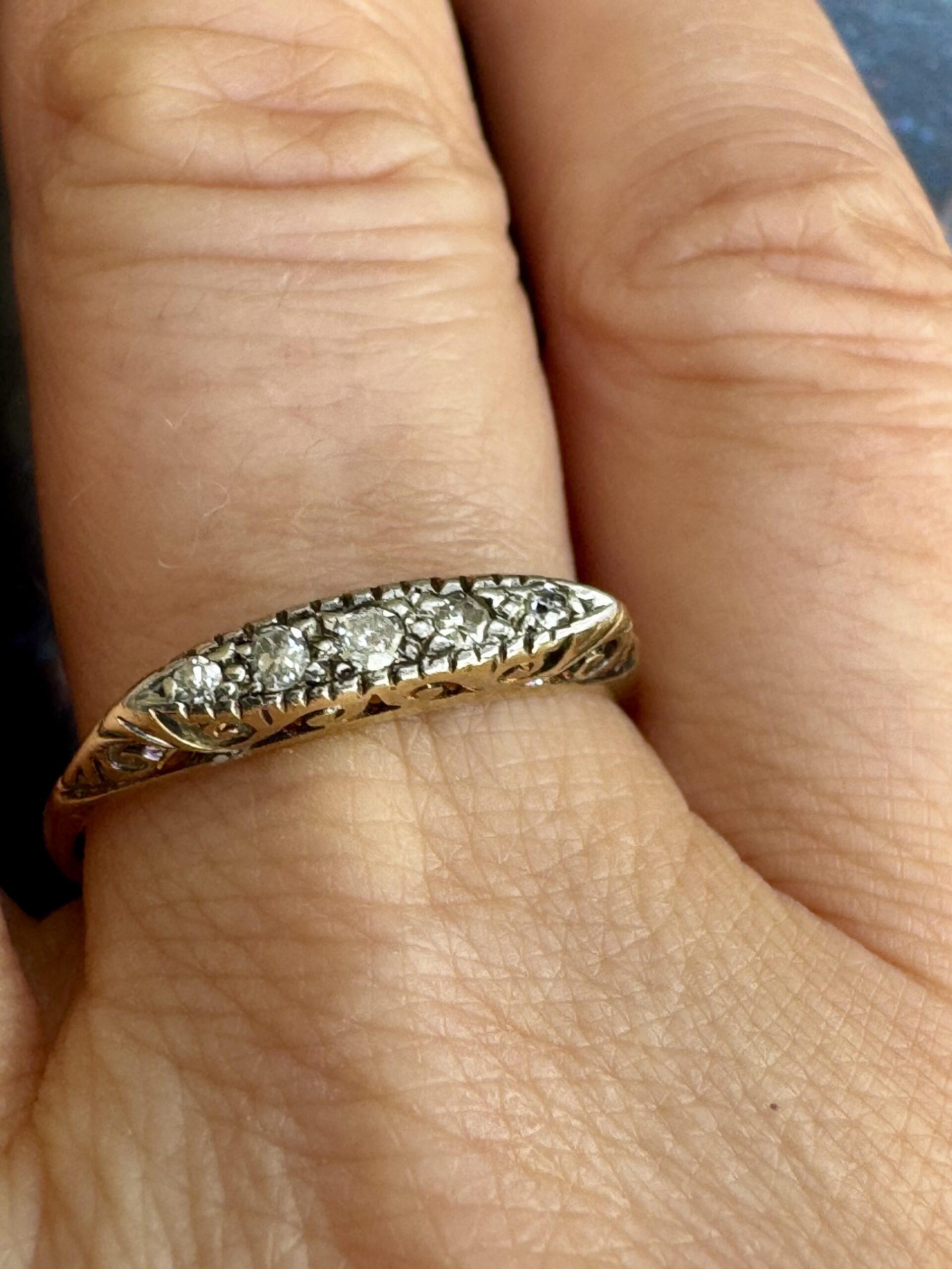 More pictures of this lovely Victorian 5 stone ring can be found here.