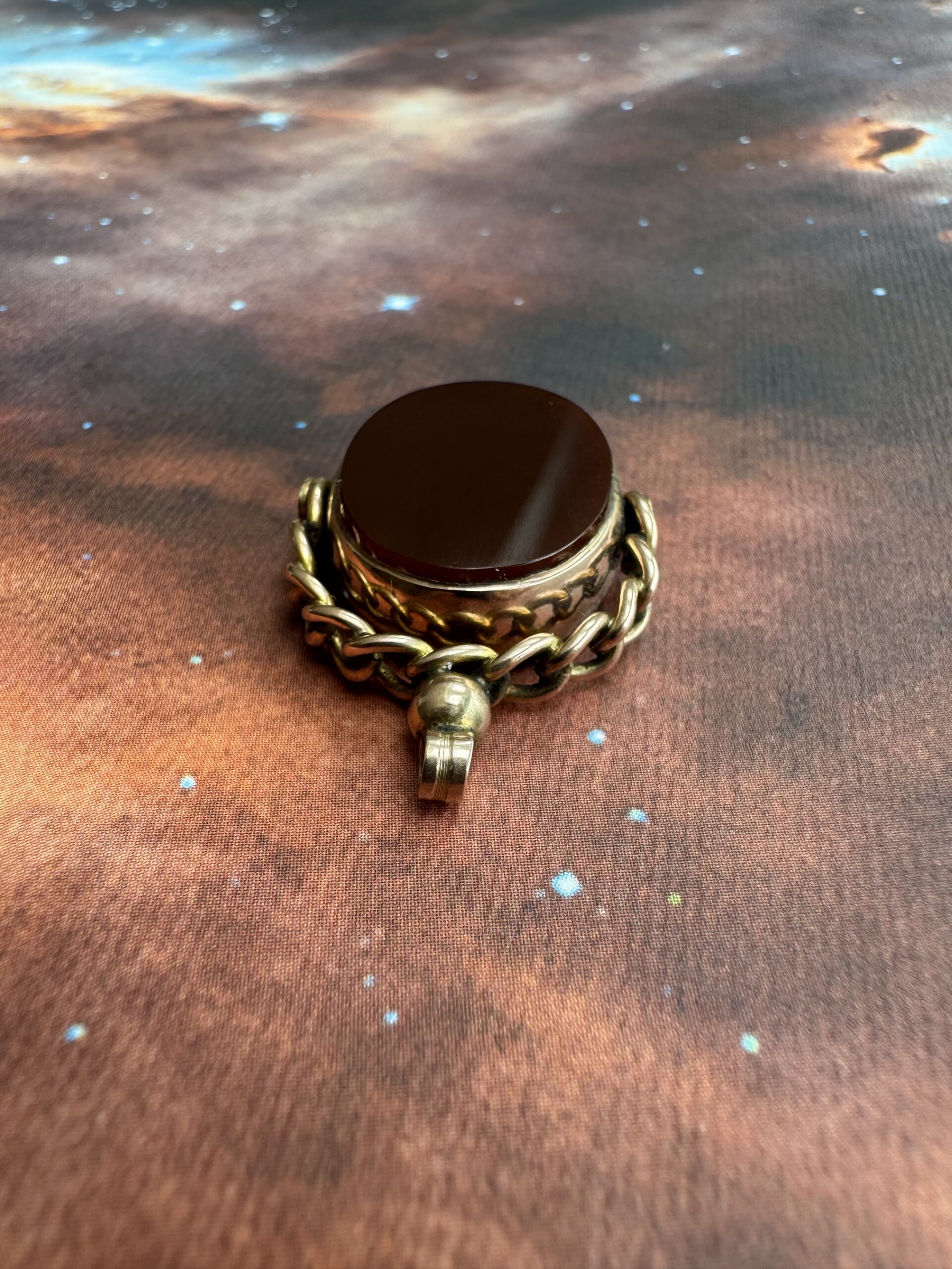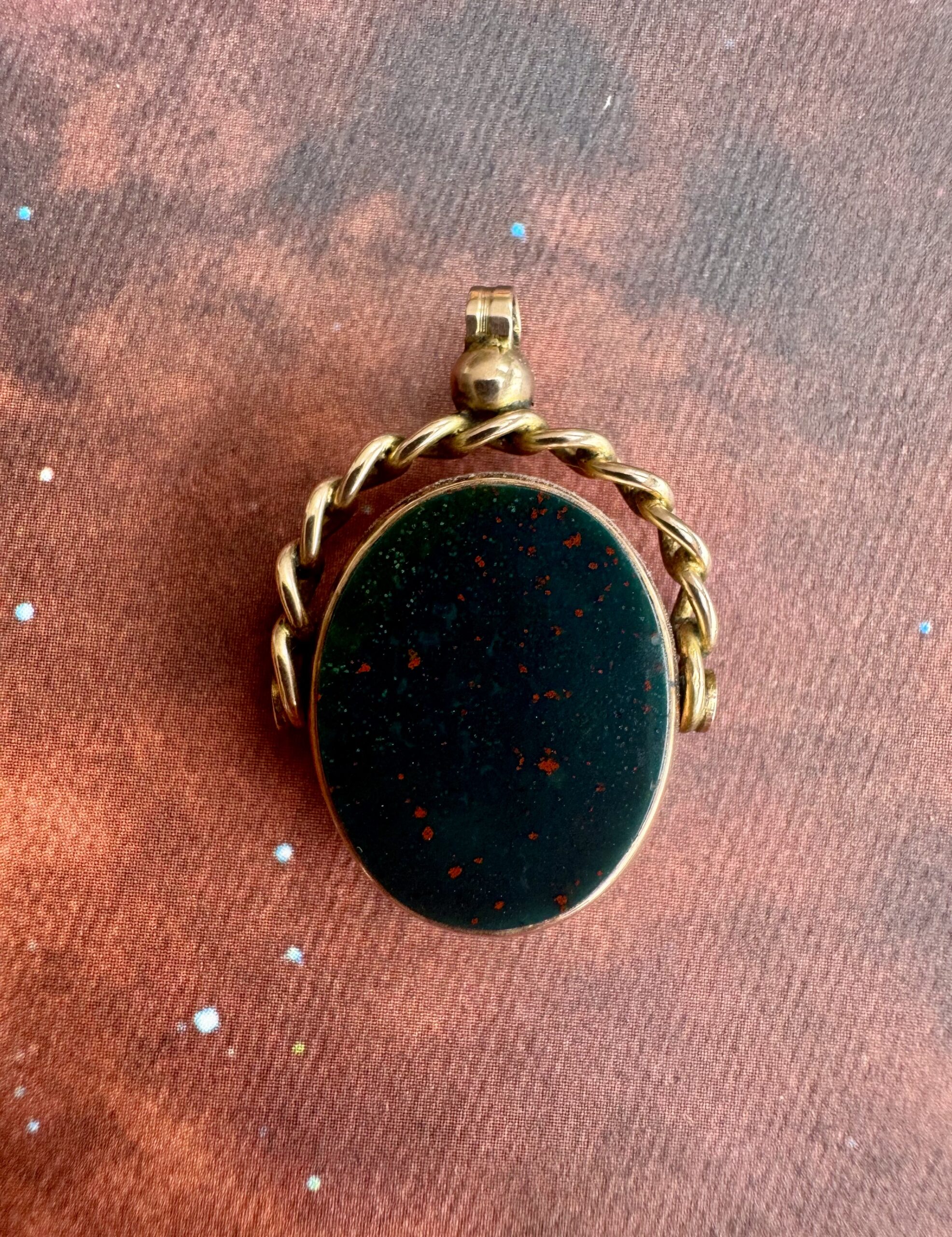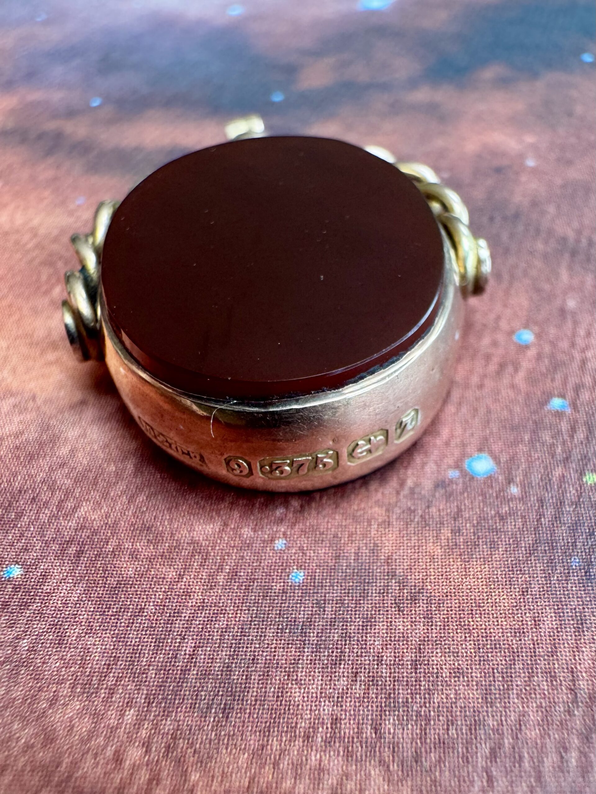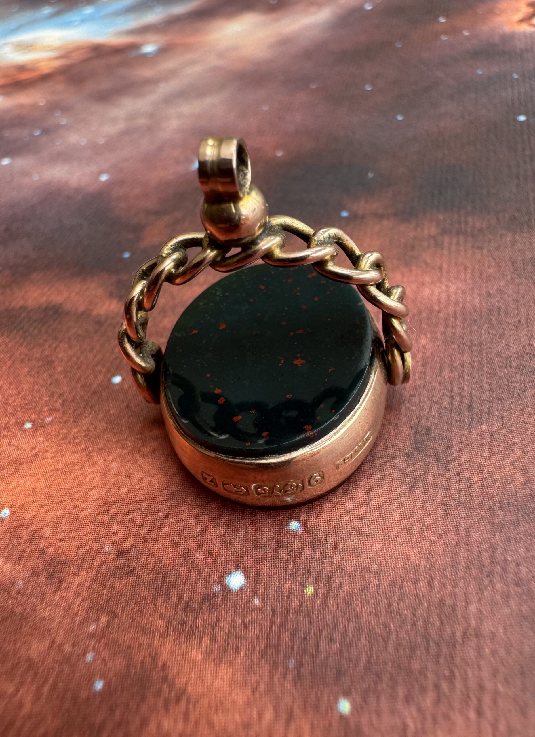 A really rather wonderful large Victorian bloodstone and carnelian spinner fob in 9ct rose gold.